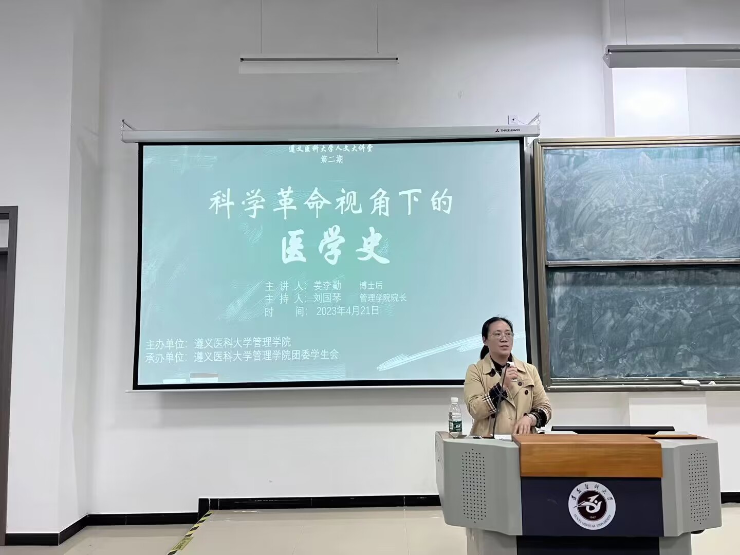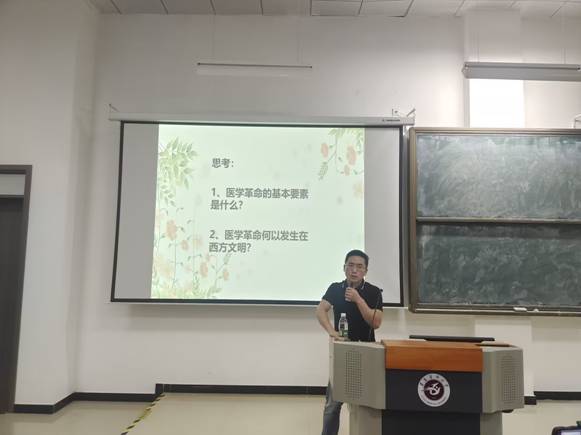 在世界读书日来临之际,为配合公司推广全民阅读,建设书香校园,向公司广大师生传播医学人文知识、提高文学素养,引领广大师生传承中华经典、弘扬民族文化,tyc33455cc于2023年4月21日晚上7点在第三教学楼18阶梯教室开展了“人文大讲堂”主题系列讲座第二期——《科学革命视角下的医学史》。本次讲座由tyc33455cc主办,tyc33455cc团委员工会承办,人文医学研究中心姜李勤博士后主讲,tyc33455cc经理刘国琴教授主持。