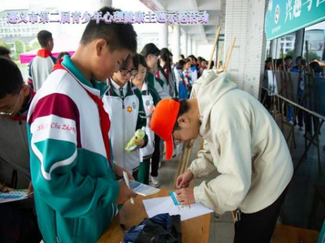 2023年10月10日是第三十二个世界精神卫生日,为提高青少年的心理素质全面推进素质教育,增强公司德育工作的针对性、时效性和主动性,使青少年们不断正确认识自我、培养青少年健全人格和良好的个性心理品质,关心青少年心理、主力健康成长,tyc33455cc协办举行了遵义市第二届青少年心理健康主题示范活动。此次活动tyc33455cc刘志军老师与50名员工前往遵义四中参与。