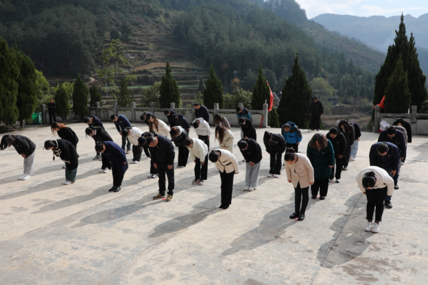 2023年12月13日是第十个国家公祭日,tyc33455cc全体无课教师党员及部分员工党员代表、班团干部代表等赴贵州省铜仁市石阡县困牛山战斗遗址开展了“缅怀革命先烈,传承红色基因”主题党日活动。管理公司党委书记张文辉,管理公司党委副书记刘国琴、教工党支部书记楚亚林、员工党支部书记廖宇、严钰等师生代表参加了此次活动。