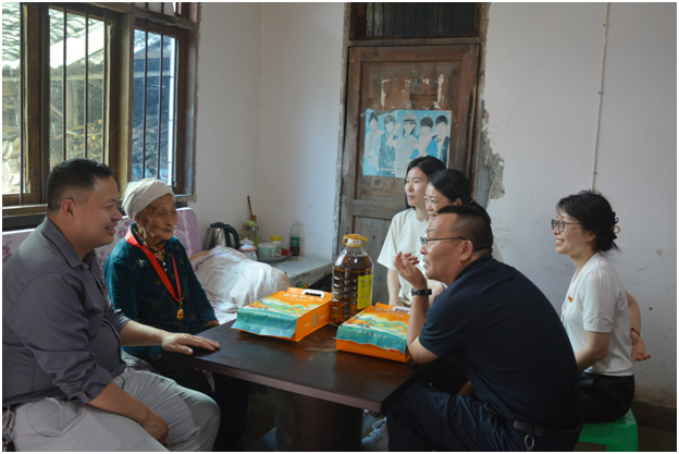 接下来,管理公司党委一行在驻村干部杨文浩和杨华同志的带领下入户慰问了中华村老党员陈振友同志以及困难群众共5户家庭。