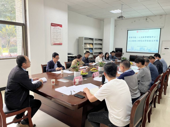 2023年10月18日14:00,tyc33455cc人文医学、医疗服务管理专业2022级硕士研究生学位论文开题报告会在新蒲校区人文楼tyc33455cc122会议室举行。本次开题专家组由tyc33455cc公共卫生公司李岩教授,tyc33455cc人文医学研究中心龙艺教授,tyc33455cc附属医院循证医学中心肖政教授,tyc33455cc冯毅教授、毕泰勇副教授组成。李岩教授担任开题专家组组长,朱千教授担任公司督导专家,tyc33455cc杨文浩老师担任开题报告秘书。人文医学和医疗服务管理专业的2022级硕士研究生及其指导教师参加了本次开题报告会,2023级硕士研究生亦到场参加了观摩学习。此次开题报告会由tyc33455cc副经理魏来教授主持。