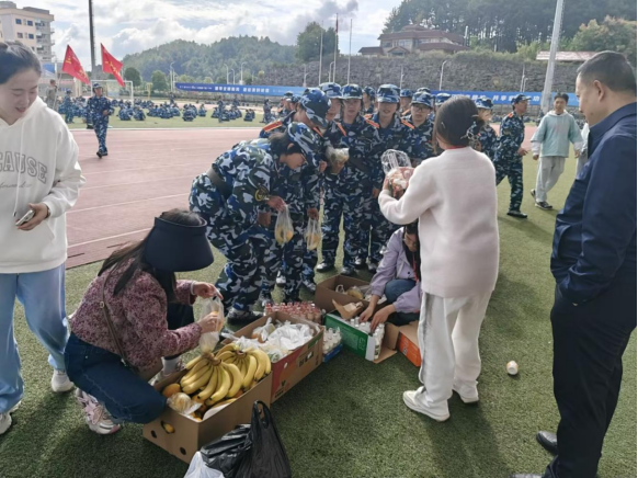 首先,张文辉代表管理公司党委对全体新生致以亲切的问候。通过与员工交流,张文辉简单了解了员工的军训情况,包括军训内容及员工的军训感受,对他们在军训中展现出的坚韧不拔的精神和昂扬的斗志给予了高度赞扬。接着,彭正员询问员工在军训中遇到的困难,并鼓励他们要坚定信念、克服困难,发扬“团结、紧张、严肃、活泼”的优良作风,营造一股积极向上的力量。最后,所有老师和班导一起向新生发放了水果、饮料等慰问品,鼓励新生珍惜军训时光,培养团队精神和纪律意识,并祝愿全体新生在军训中取得优异成绩。